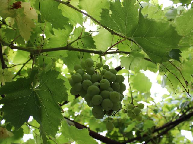 Wallpaper Green grapes on the vine among the leaves