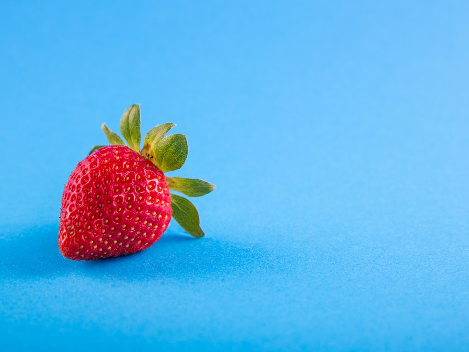 Wallpaper Red ripe strawberry on a blue background