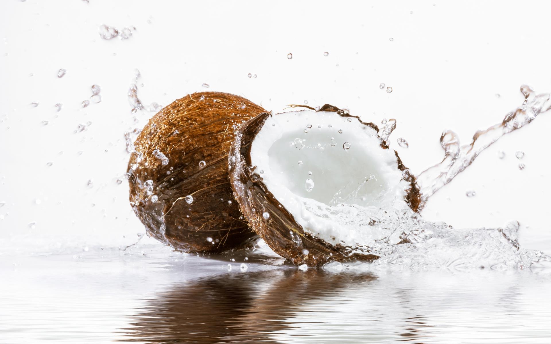Wallpaper Coconuts in the water on a white background