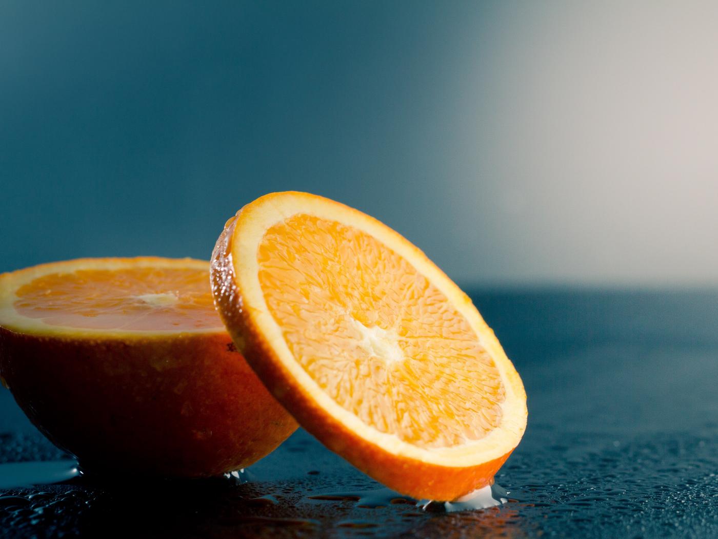 Wallpaper Orange orange on a wet table