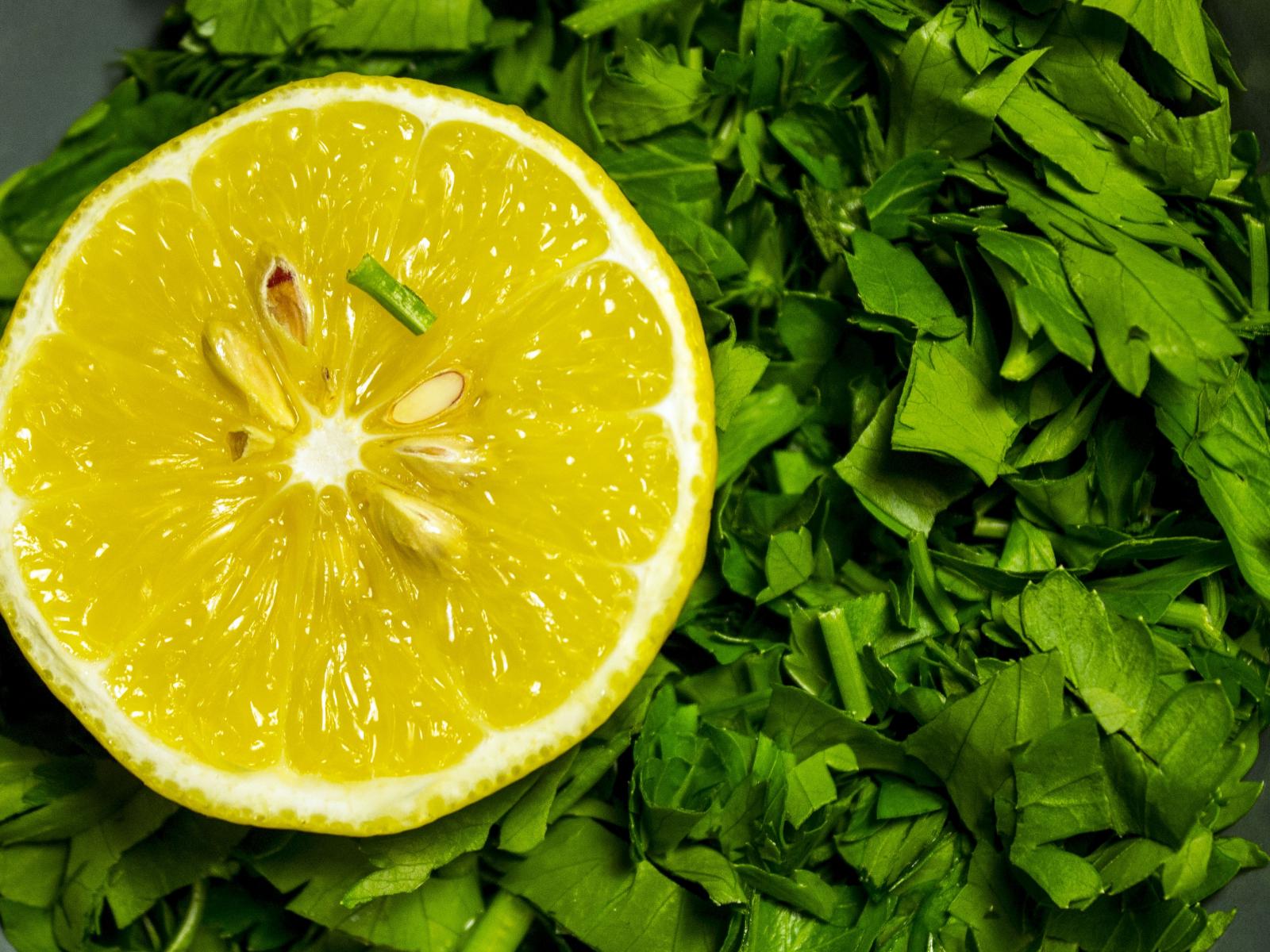 Wallpaper Half yellow lemon with chopped parsley