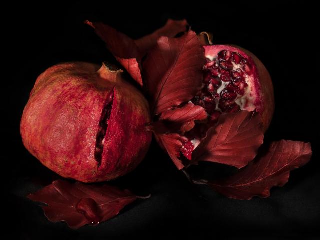 Wallpaper Two red pomegranates on a black background