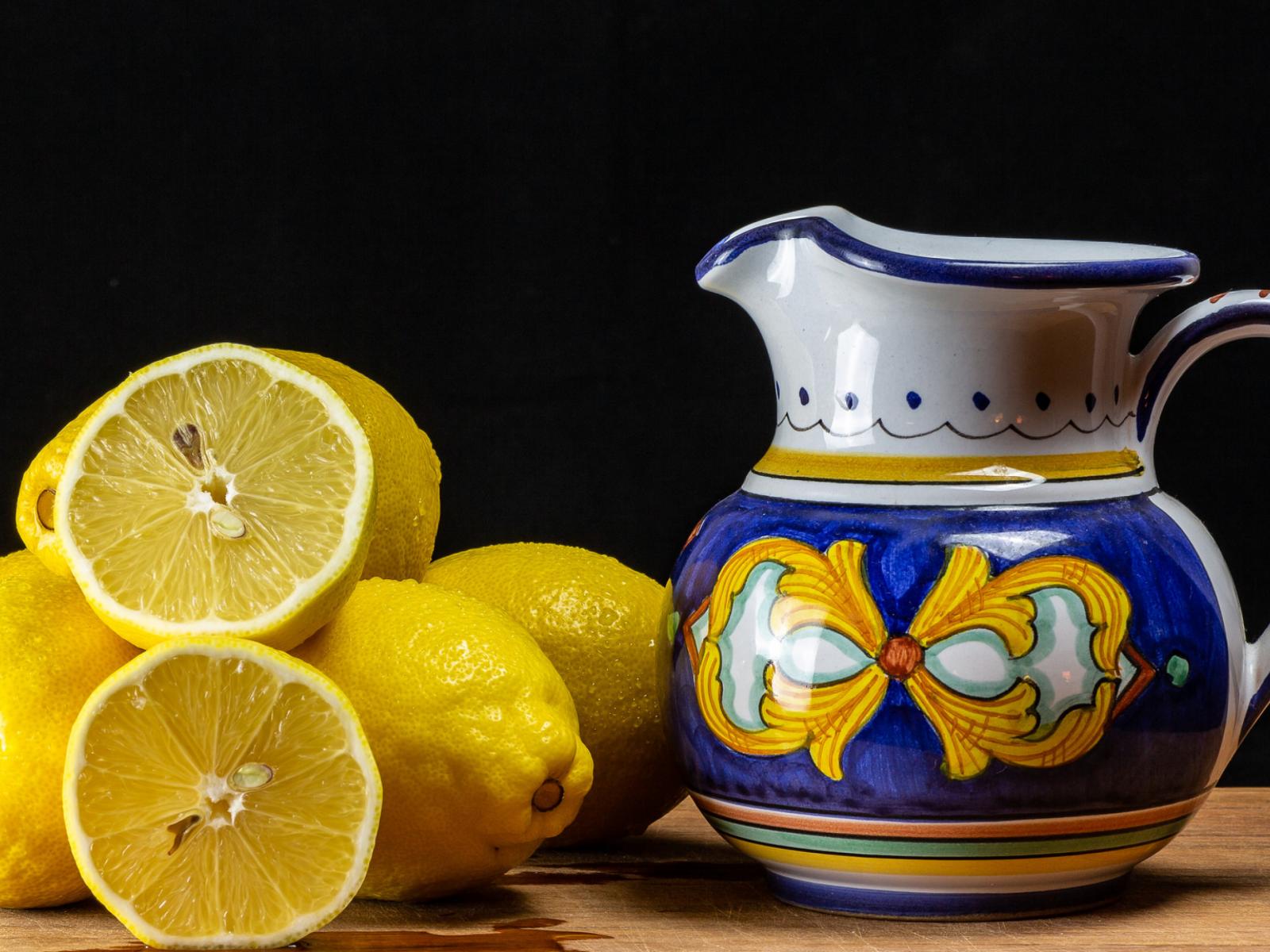 Wallpaper Yellow lemons on the table with a jug