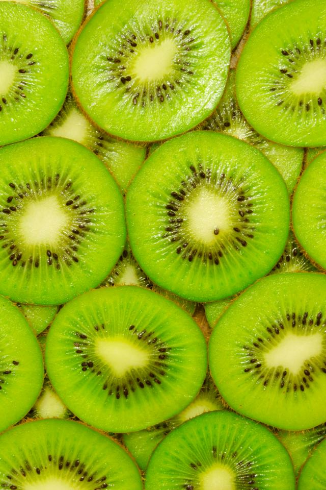 Wallpaper Background of juicy slices of kiwi closeup