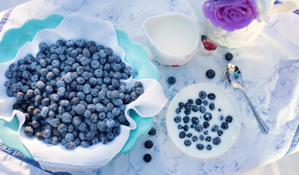 Wallpaper Muffins with icing sugar on a table with milk and blueberries