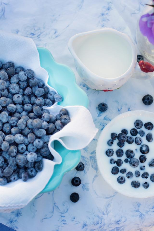 Wallpaper Muffins with icing sugar on a table with milk and blueberries