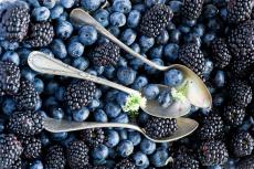Wallpaper Blueberries, raspberries and blackberries on white spoons
