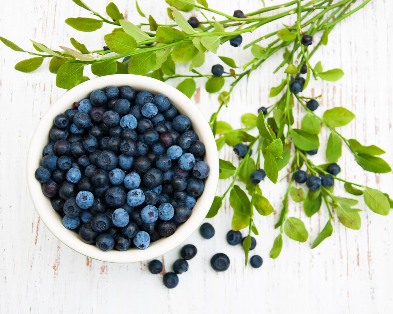 Wallpaper Fresh blueberries on a table with branches