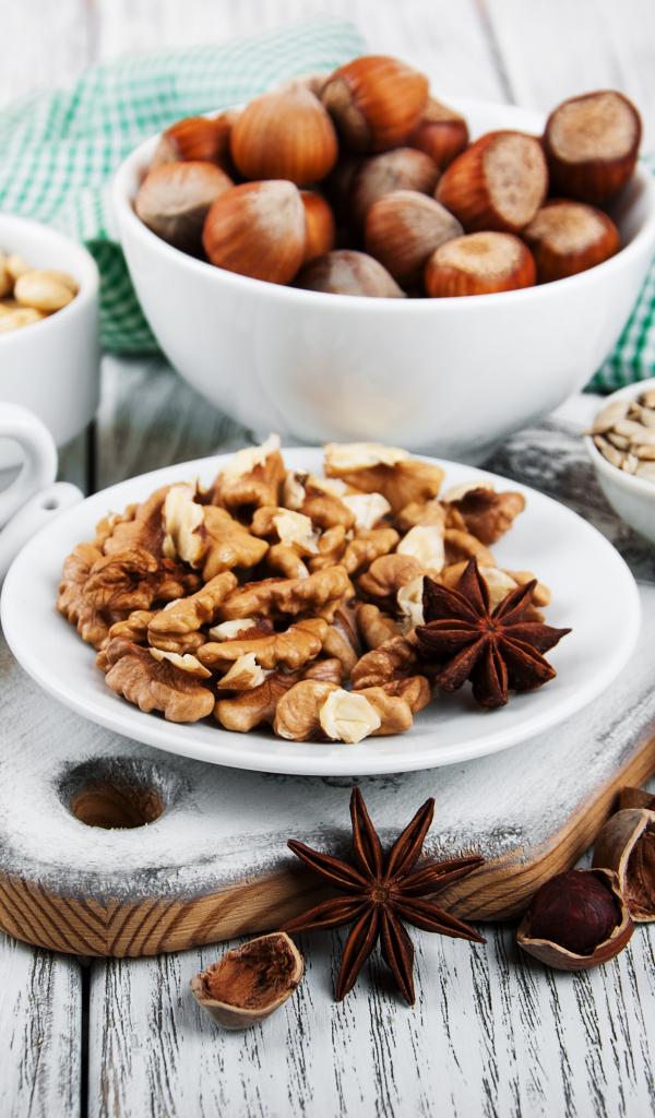 Wallpaper Different types of nuts on the table
