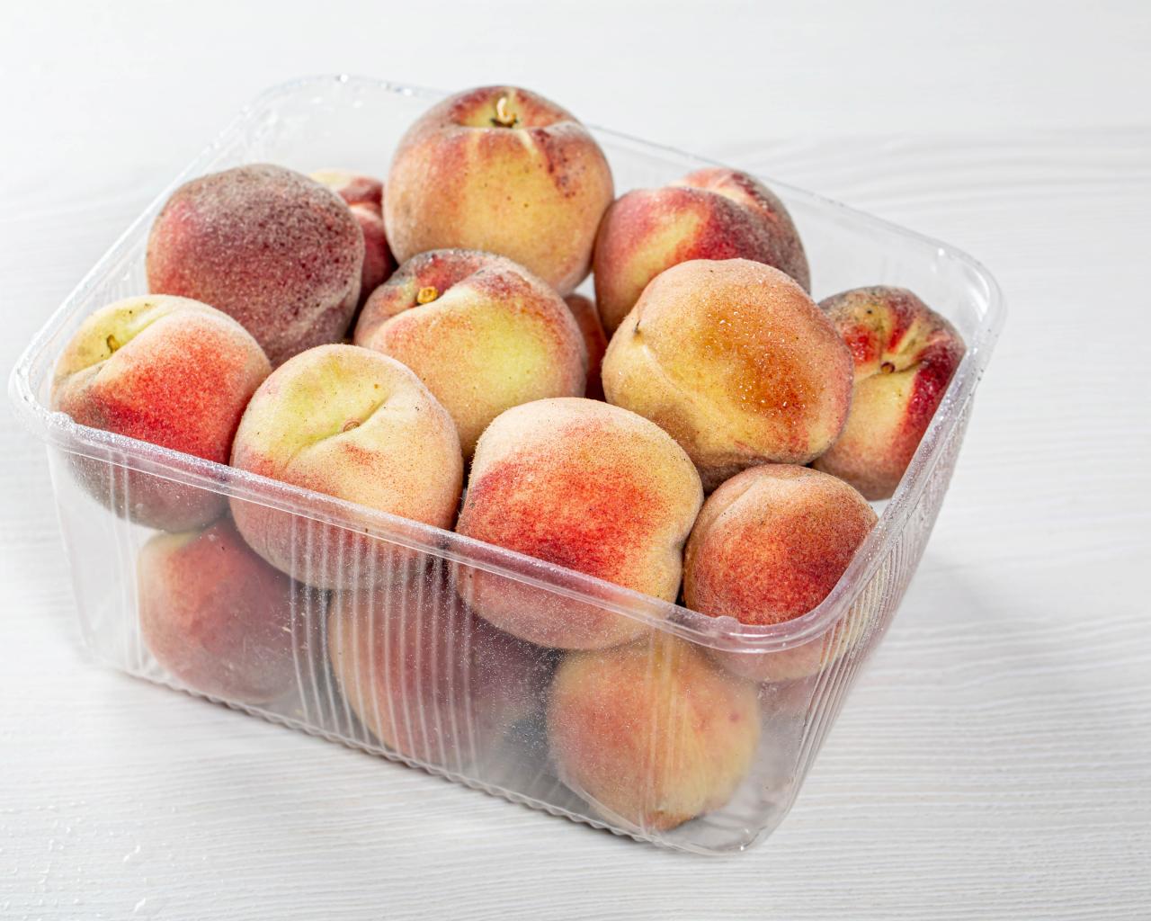 » Wallpaper Peaches with plastic container