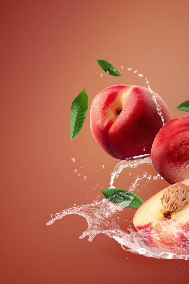 Wallpaper Nectarine in water on a pink background