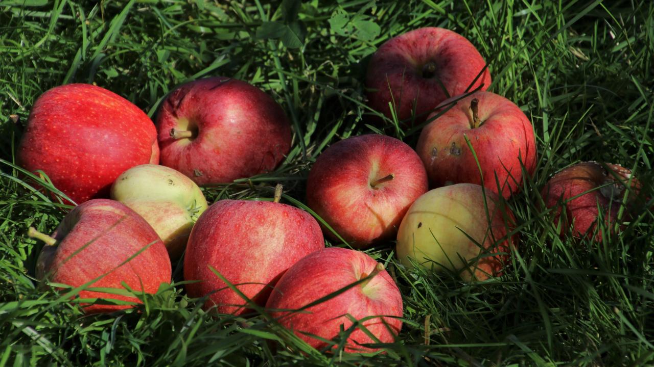 Wallpaper Ripe red apples in green grass