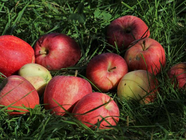 Wallpaper Ripe red apples in green grass