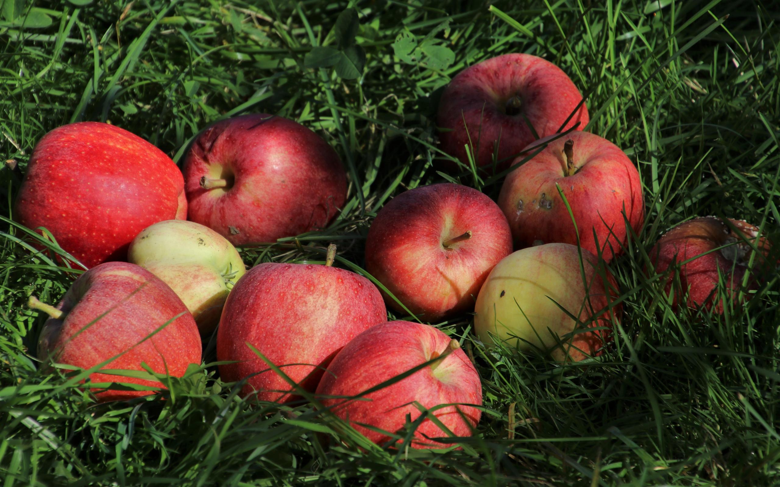 Wallpaper Ripe red apples in green grass