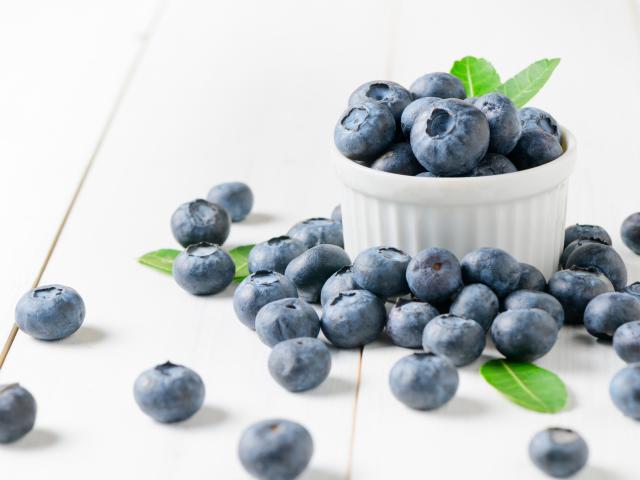 Wallpaper Thin pancakes with blueberries on a table with tea
