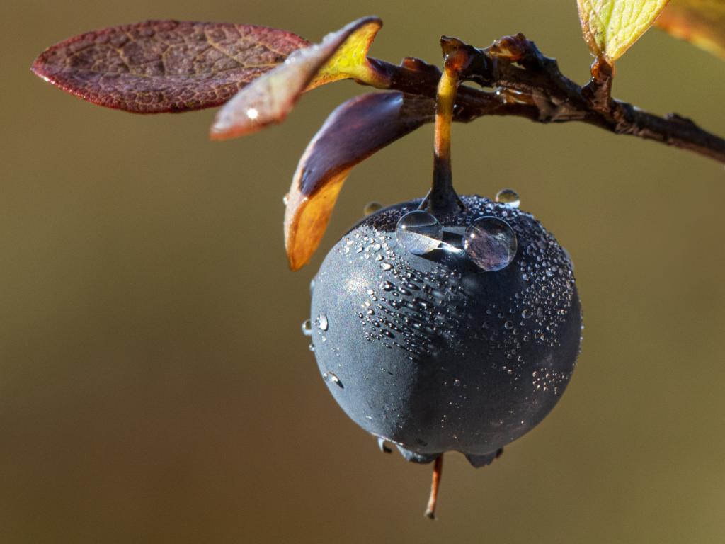 Wallpaper Blue berry on a branch in drops of dew