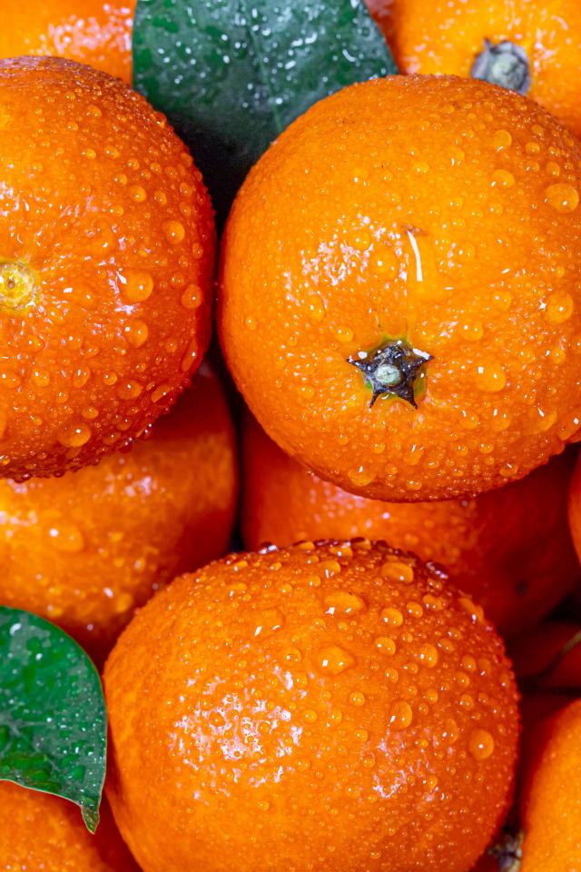 Wallpaper Tangerines in drops of water close-up