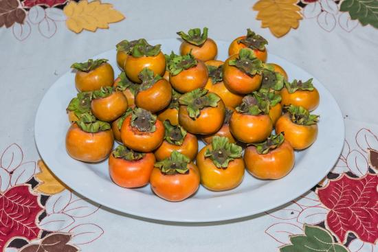 Wallpaper Ripe Persimmon Fruit on a Large White Plate