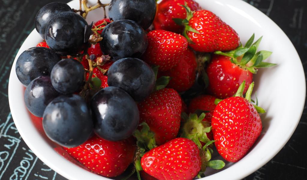Wallpaper Blue grapes on a plate with strawberries