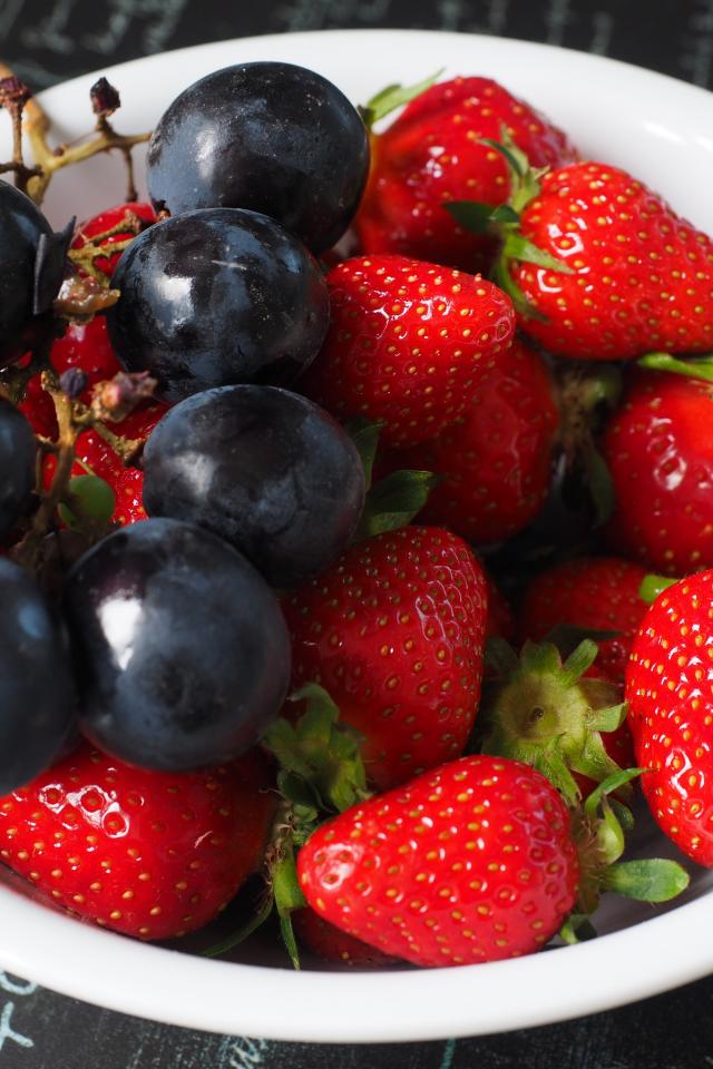 Wallpaper Blue grapes on a plate with strawberries