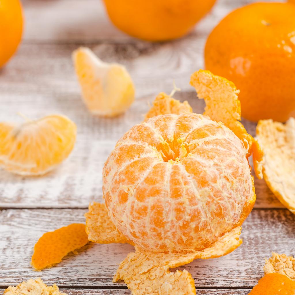 Wallpaper Peeled tangerine on a wooden table