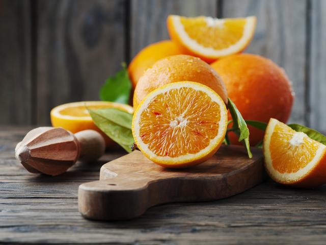 Wallpaper Large ripe oranges on the board