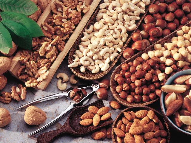 Wallpaper Different types of nuts on the table