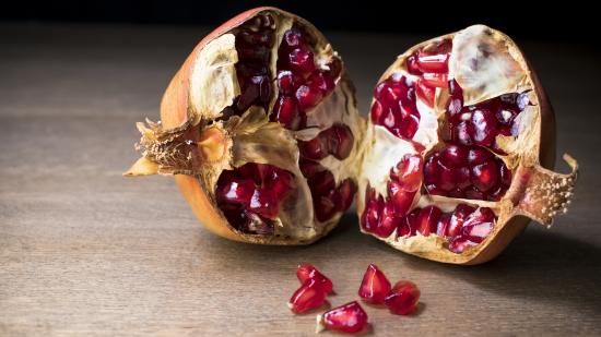 Wallpaper Broken red pomegranate on the table