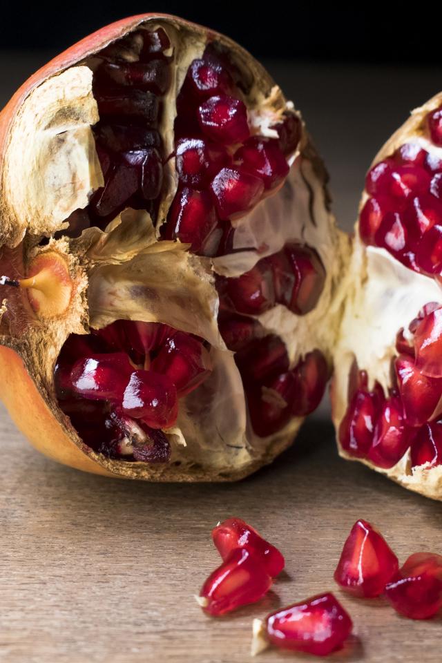 Wallpaper Broken red pomegranate on the table