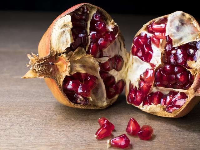 Wallpaper Broken red pomegranate on the table