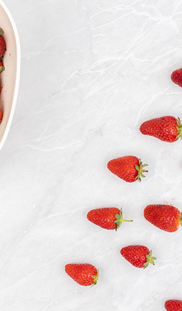 Wallpaper Ripe red strawberries in a hurry in a bowl