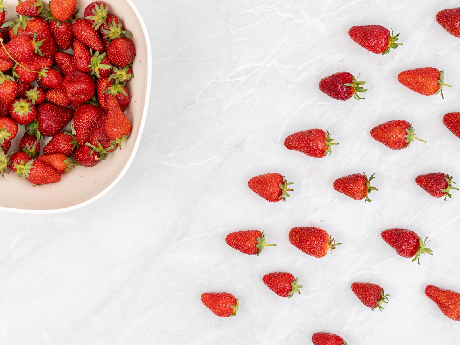 Wallpaper Ripe red strawberries in a hurry in a bowl
