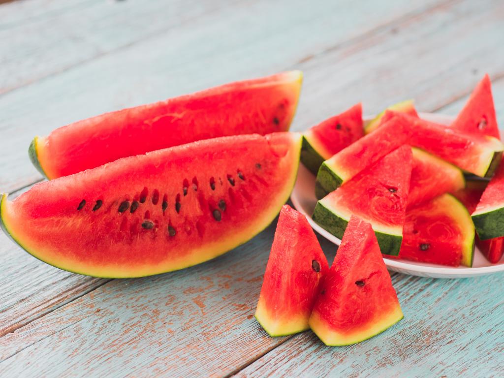 Wallpaper Watermelon sliced in pieces on a table