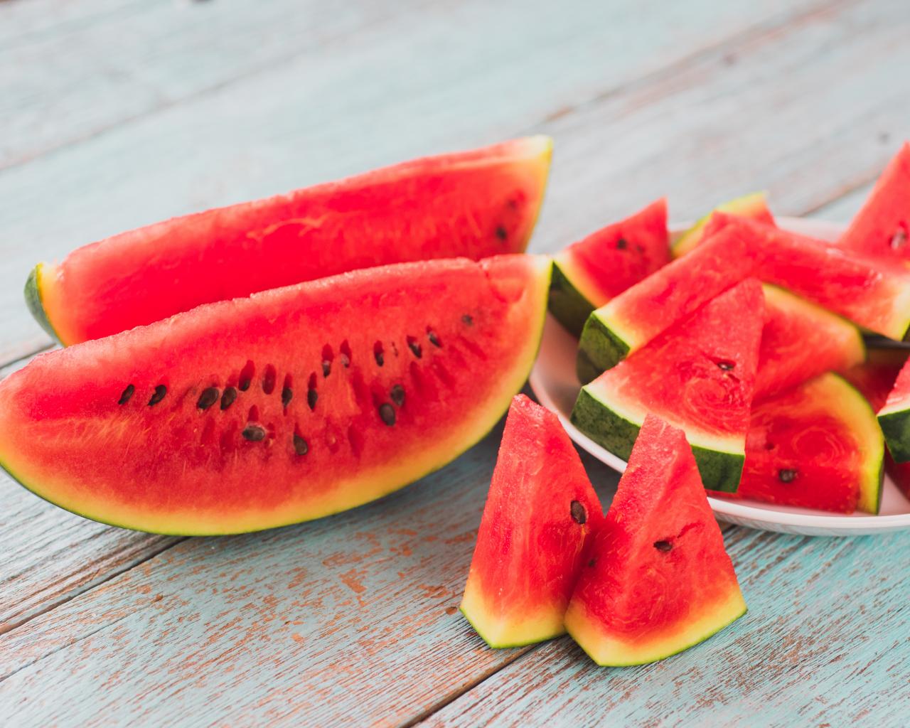 Wallpaper Watermelon sliced in pieces on a table