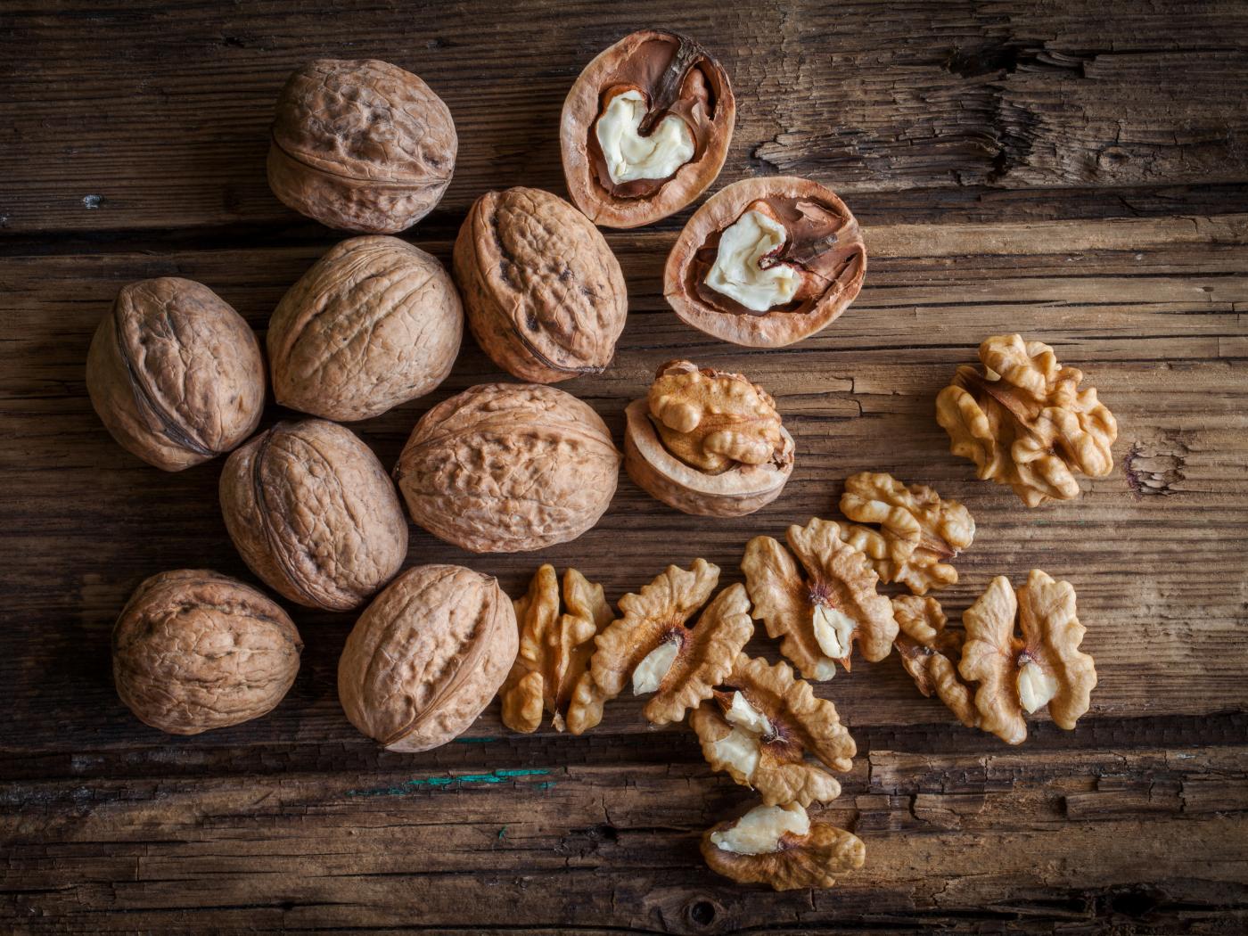 Wallpaper Walnuts on a wooden table