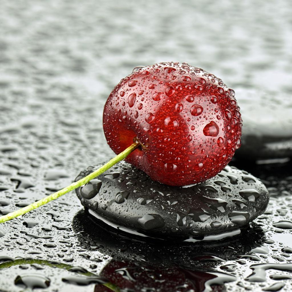 » Wallpaper Wet cherries lie on a black stone