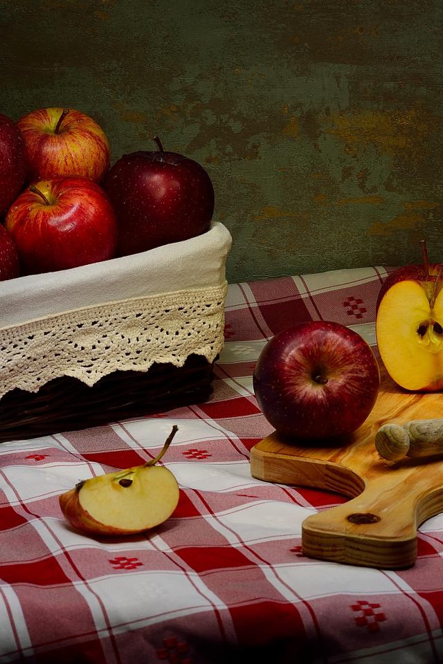 Wallpaper Ripe red apples on the table with a knife