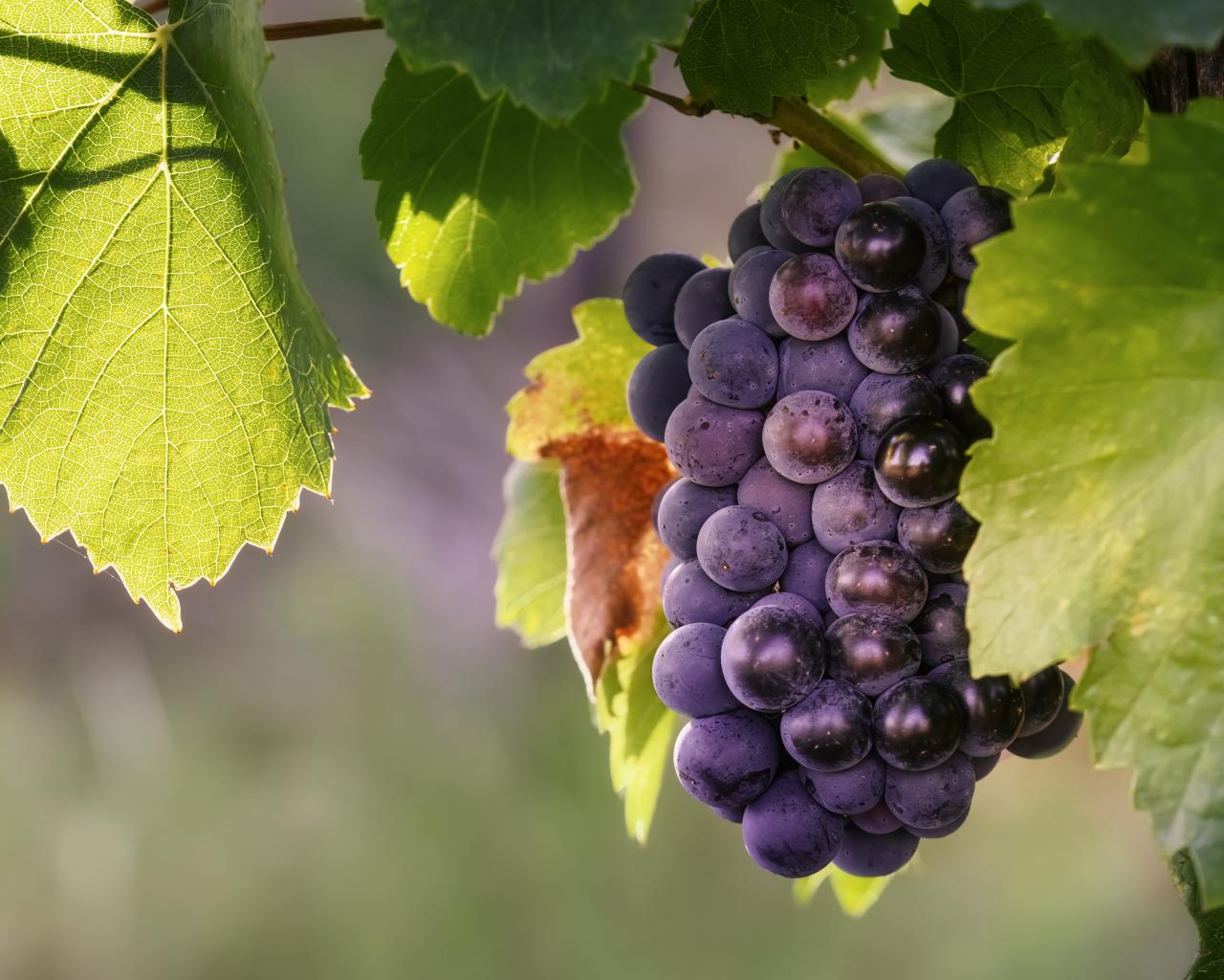 Wallpaper Bunch of blue grapes in green leaves