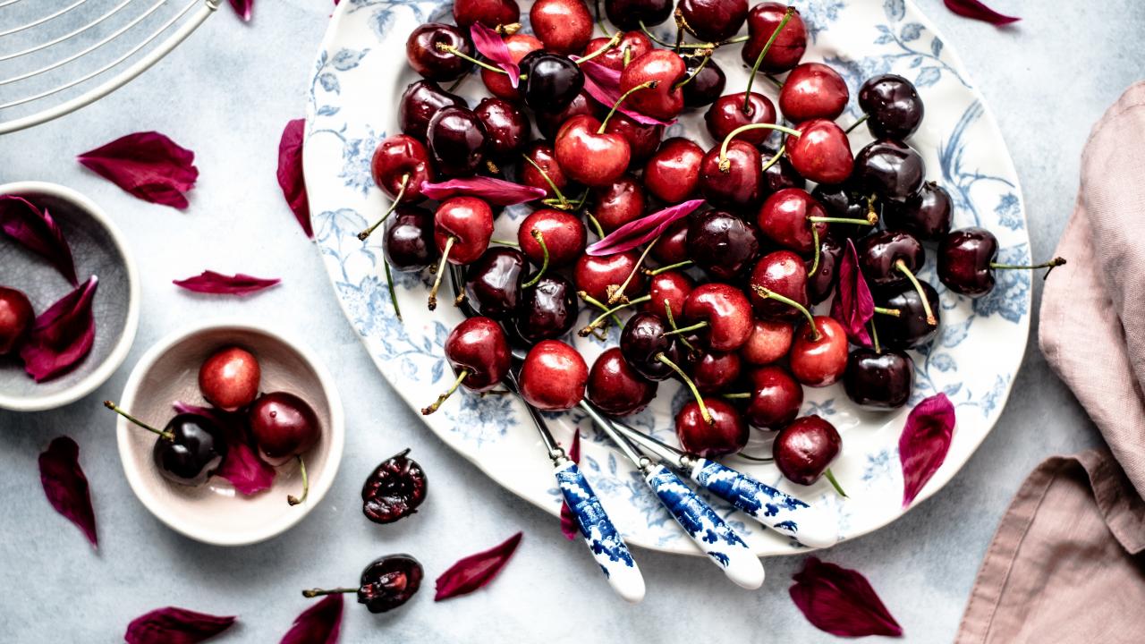 Wallpaper Ripe sweet cherries on the table