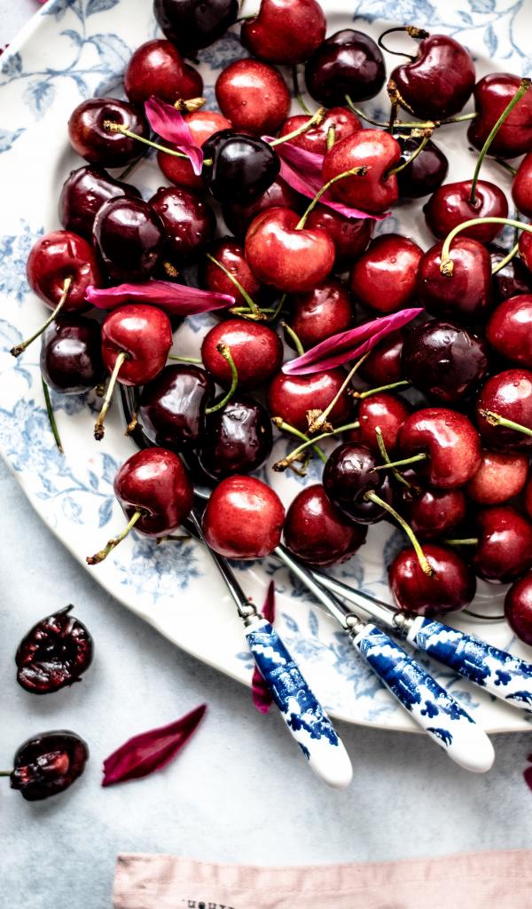Wallpaper A lot of ripe red sweet cherries in a bowl on the table