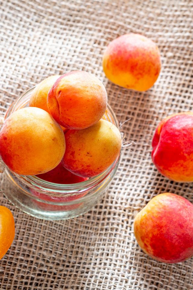 Wallpaper Ripe apricots in a glass jar on the table