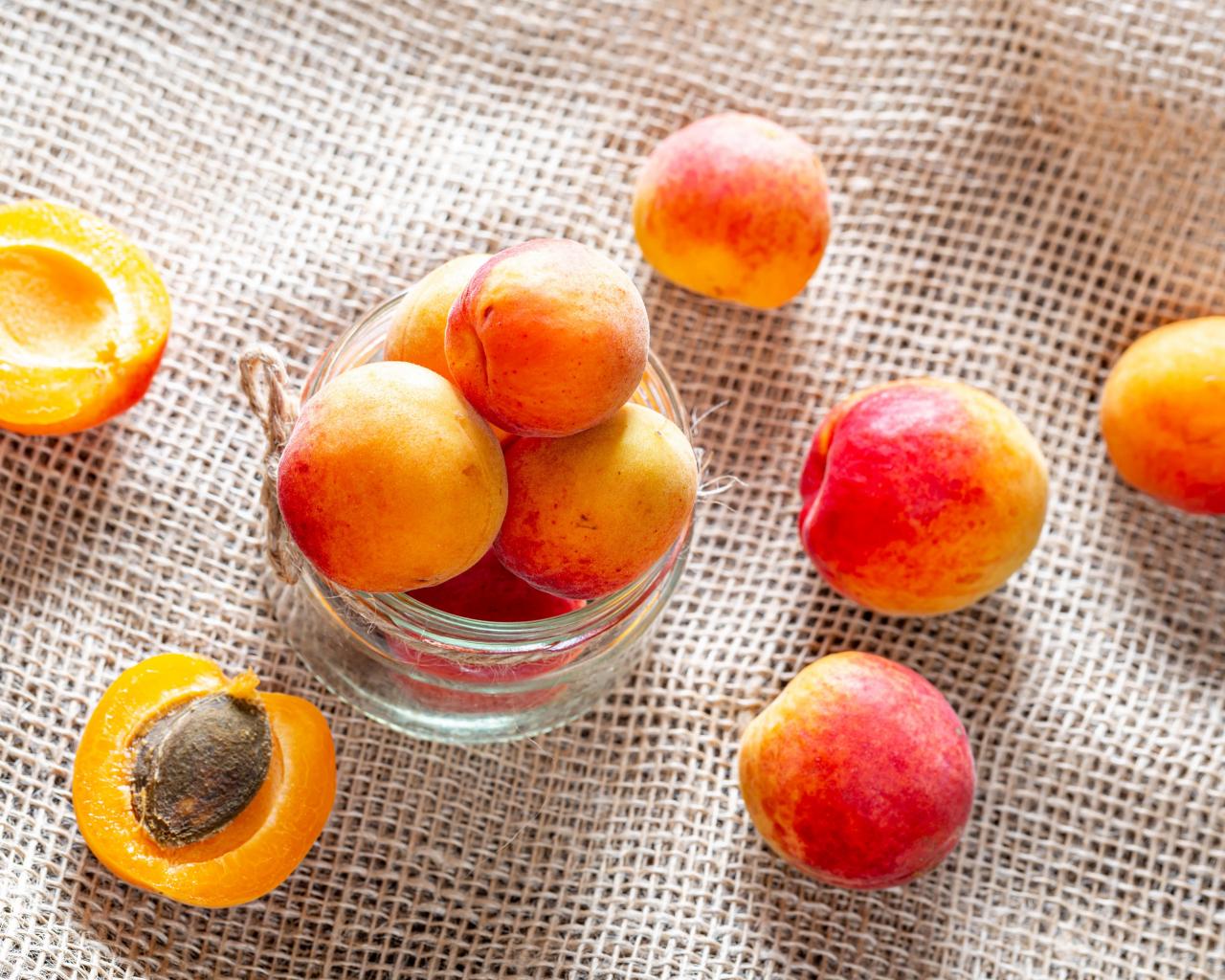 Wallpaper Ripe apricots in a glass jar on the table