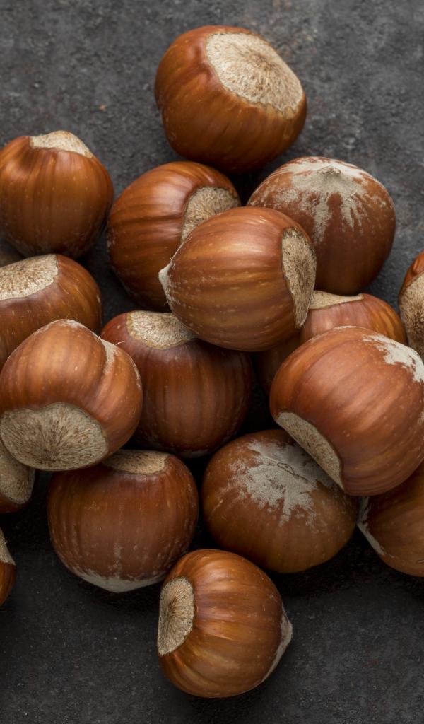 » Wallpaper Lots of hazelnuts on a gray table