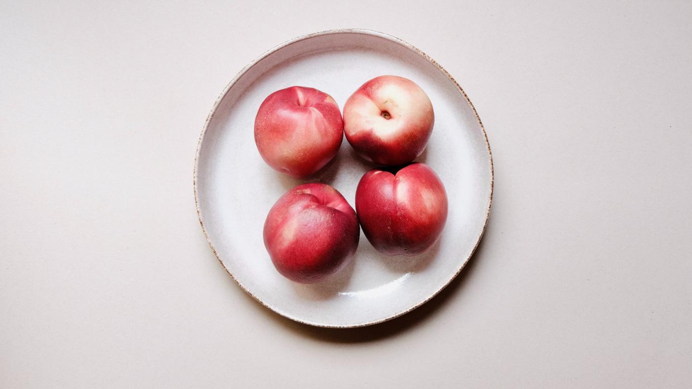 » Wallpaper Four red ripe nectarines on a plate