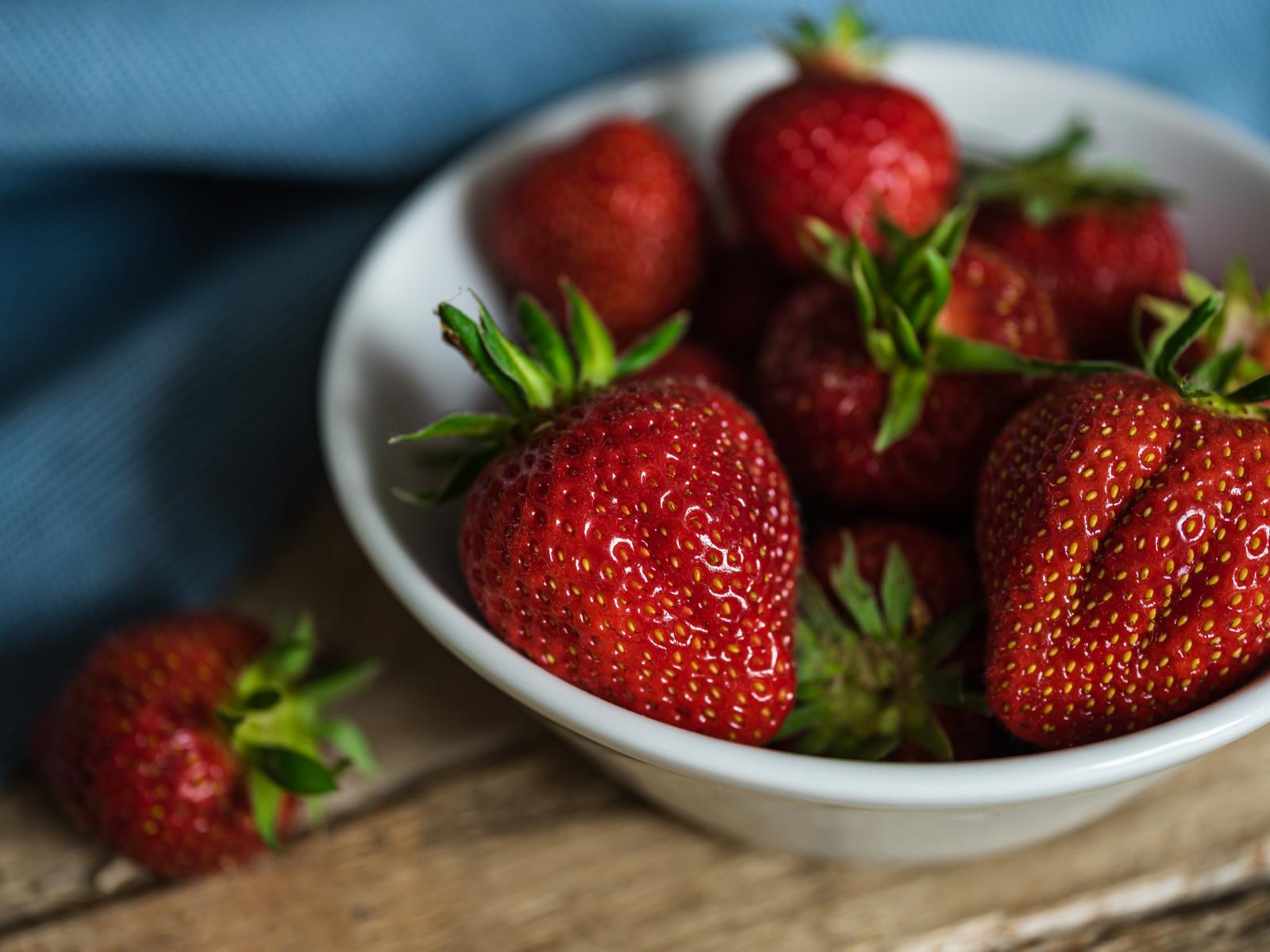 Wallpaper White plate with ripe red strawberries