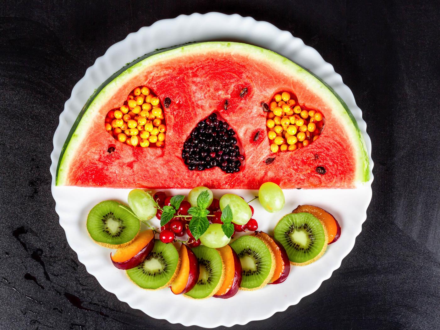 Wallpaper Watermelon on a plate with berries