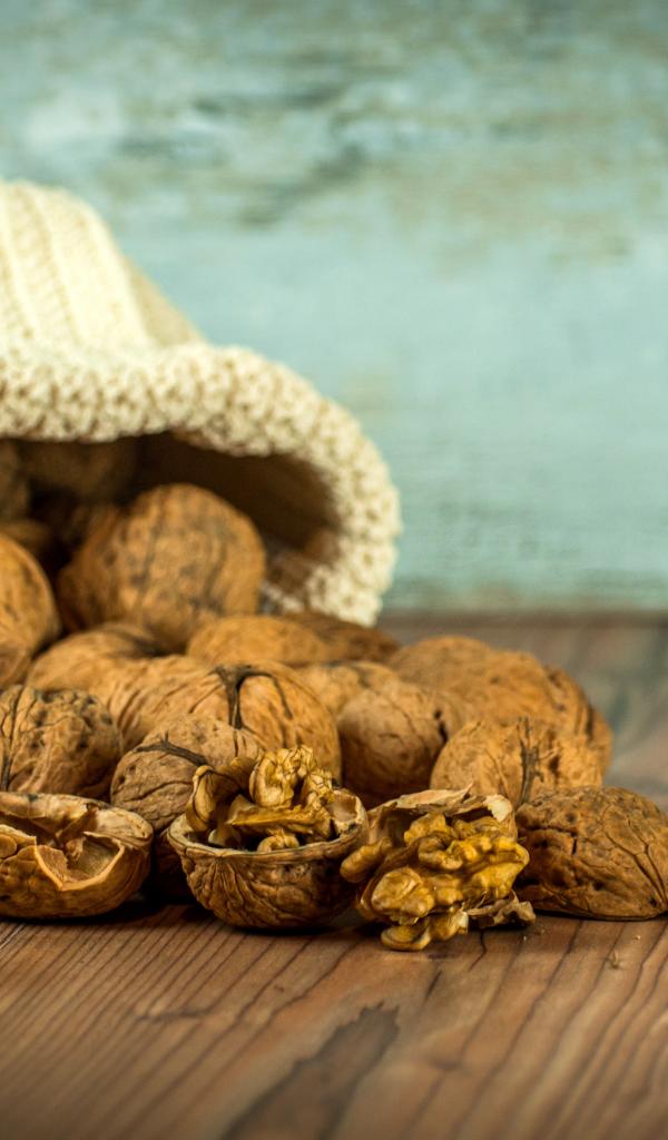 Wallpaper A bag of walnuts on the table