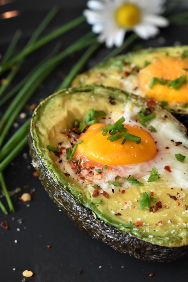 Wallpaper Baked avocado with scrambled eggs in a pan