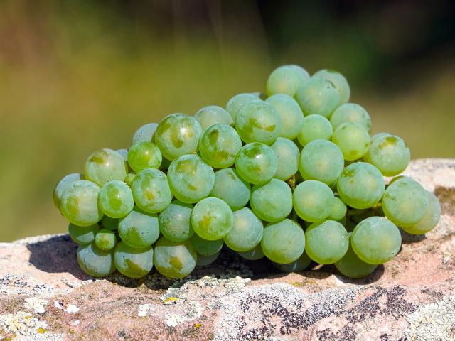 Wallpaper A bunch of green grapes lies on a stone