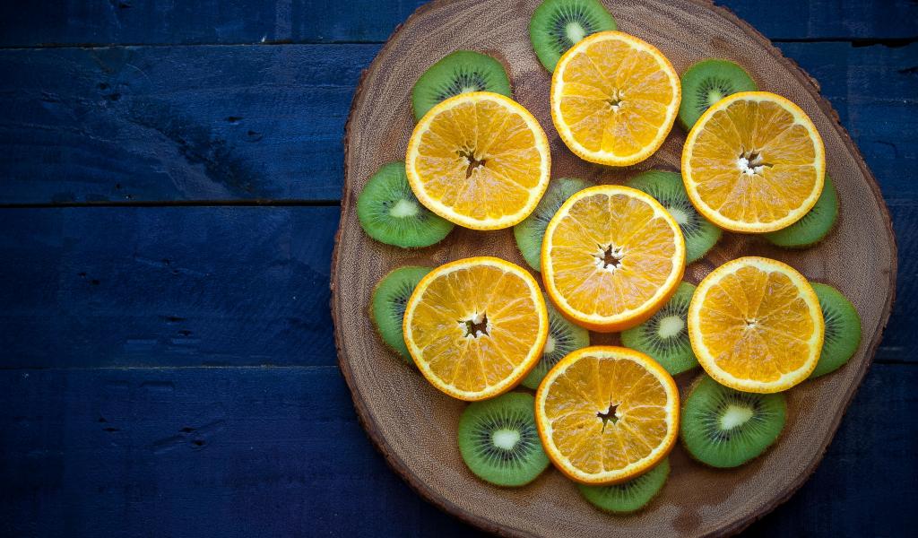 Wallpaper Kiwi slices with oranges on a chalkboard